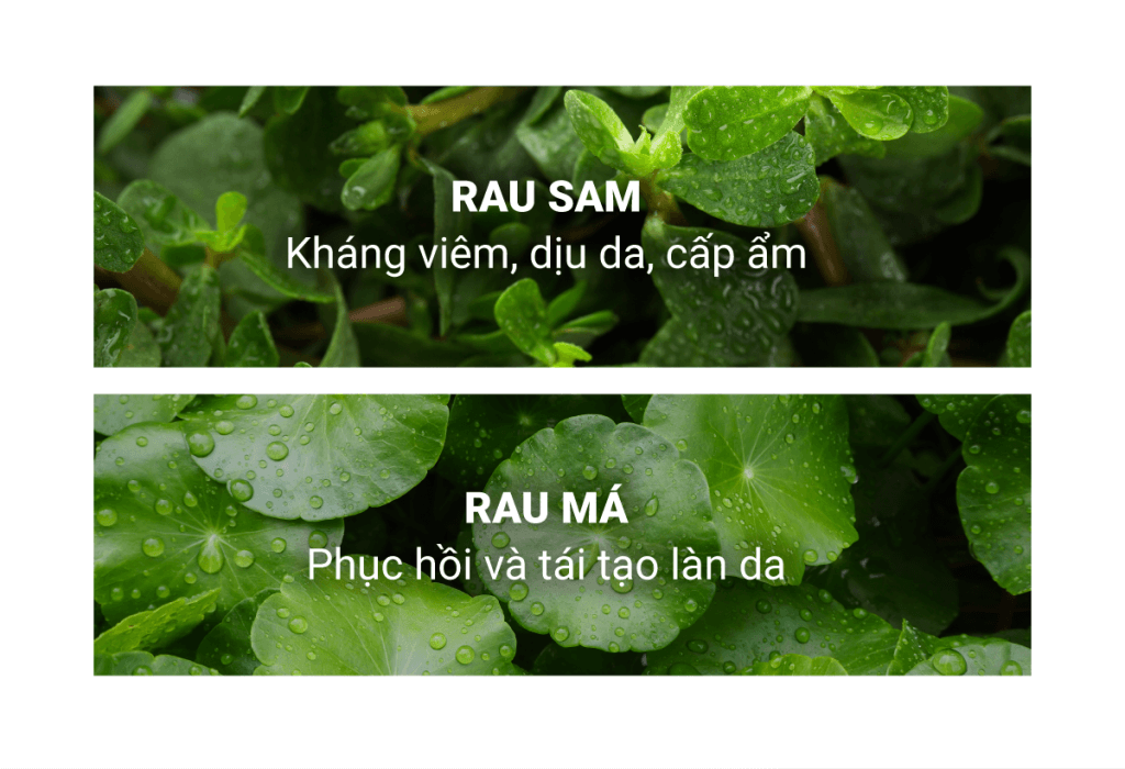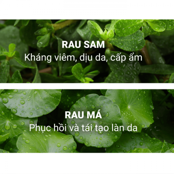 ✔️ Chiết xuất rau má, rau sam hỗ trợ tối đa trong việc kháng viêm, làm dịu da, giảm thiểu các nguy cơ kích ứng, giúp quá trình cải thiện bề mặt da không gây cảm giác khô căng khó chịu.