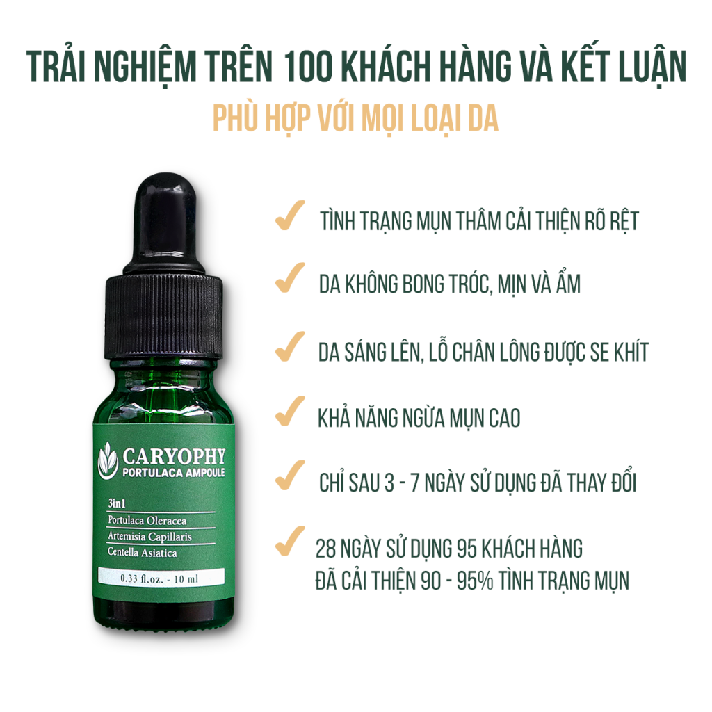 Công dụng của Serum Caryophy Portulaca Ampoule trị mụn, trị thâm: