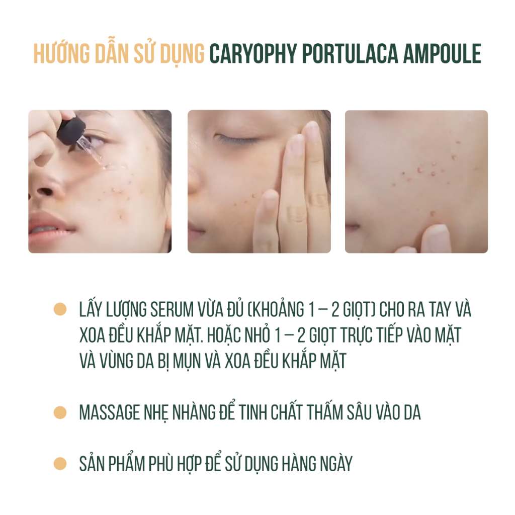 Hướng dẫn sử dụng: Serum Caryophy Portulaca Ampoule trị mụn, trị thâm hiệu quả: