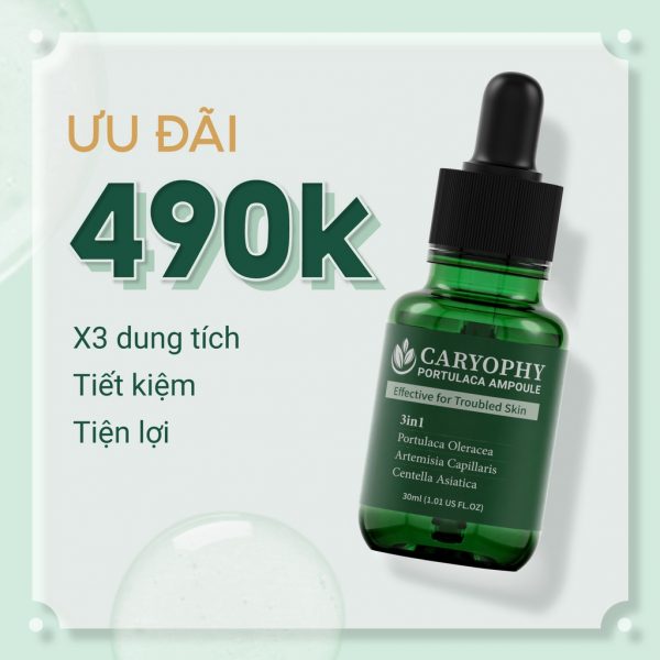 Serum Caryophy Portulaca Ampoule là Serum Hàn Quốc 3in1 trị mụn, trị thâm, dưỡng ẩm, phục hồi da và chống lão hóa toàn diện.